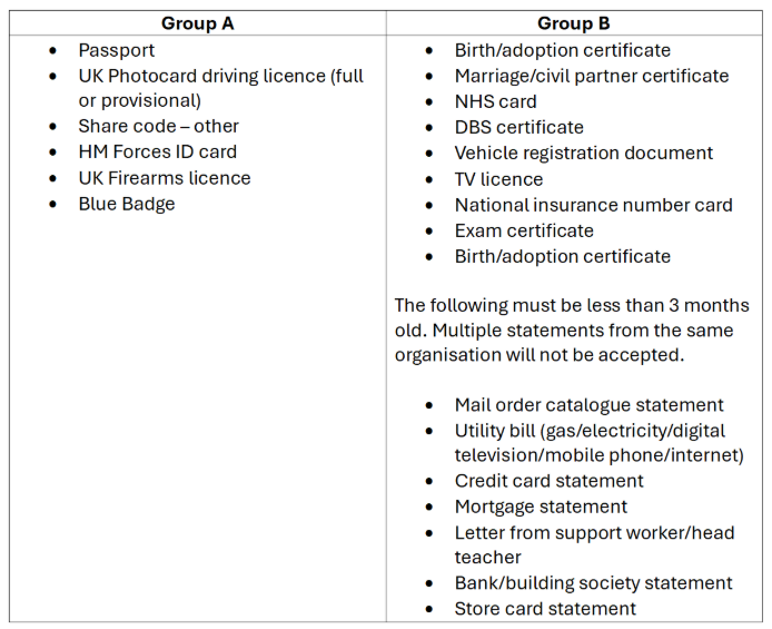 We will only accept: a birth certificate and a current Child Benefit award letter or Child Tax Credit award letter. *Bank statements will be accepted as long as it shows the benefit payment as being received and shows the name of who it has been paid to* |